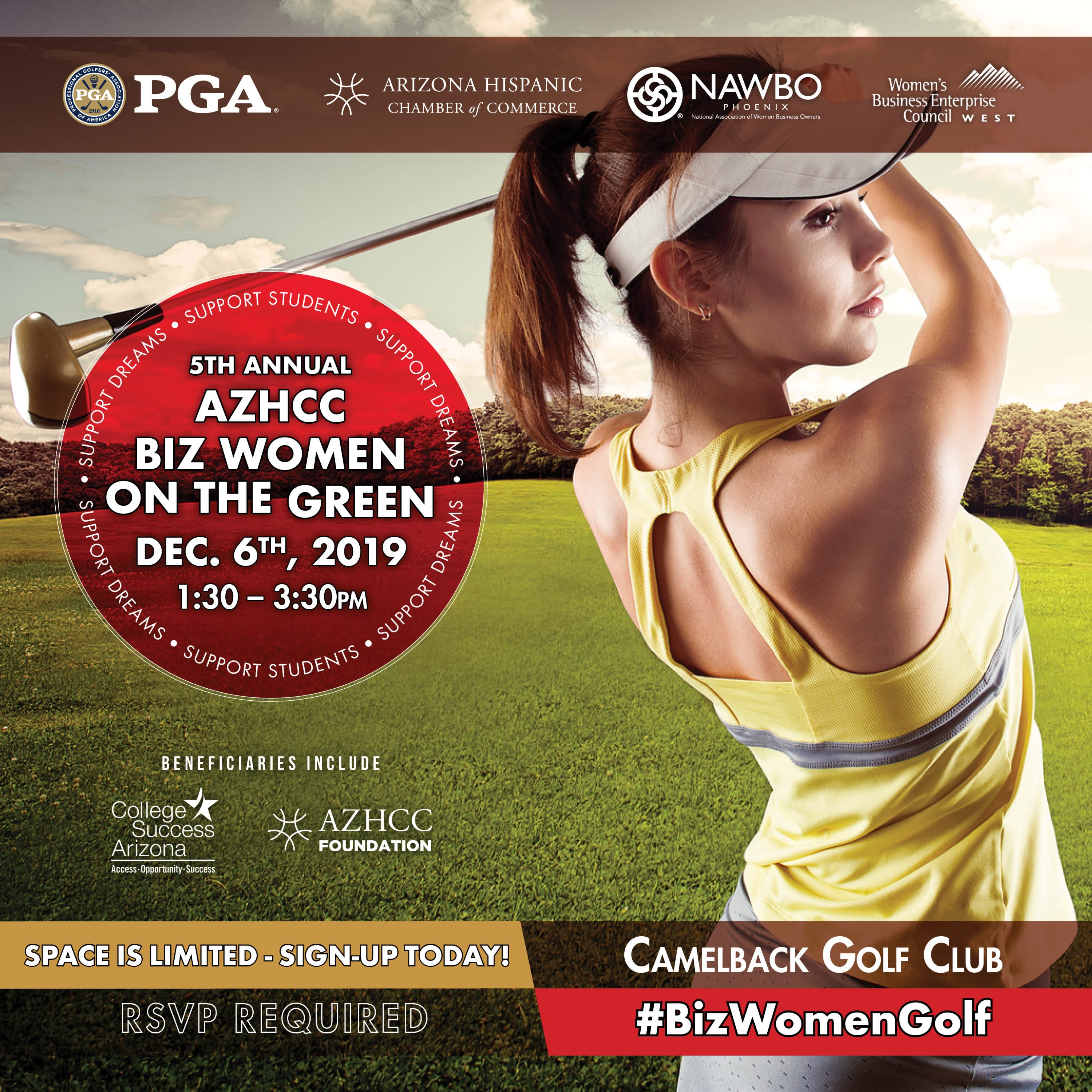 Learn how to play the game and game fundamentals such as posture, grip, pitching, etiquette and rules taught by PGA Professionals. Included with registration is dinner, drinks and fun at the 28th Annual Bud Shootout BBQ Jamboree with the tournament players and featuring live music, networking and more! Proceeds for the Bud Shootout benefit AZHCC Foundation for the college scholarships!