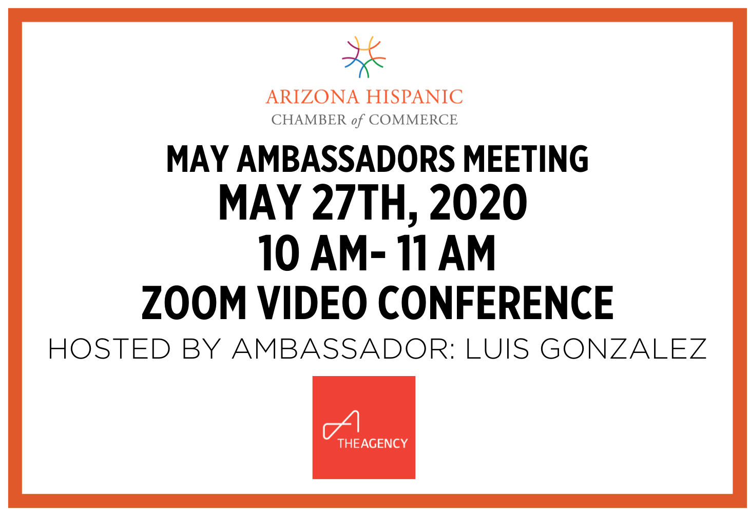 Dear Ambassadors, I hope you are all doing well! We continue to monitor all updates and necessary precautions to ensure the health and safety of our AZHCC familia. After hearing the latest updates from the CDC regarding the Coronavirus, we have made the difficult decision to cancel all of our in-person events through the month of May. There is some great news! Our May Ambassadors meeting will now be held via Zoom webinar! I hope you can still join us for this special online meeting. May Ambassadors Meeting Wednesday, May 27, 2020 10:00 AM - 11:00 AM Zoom webinar link will be provided upon registering.