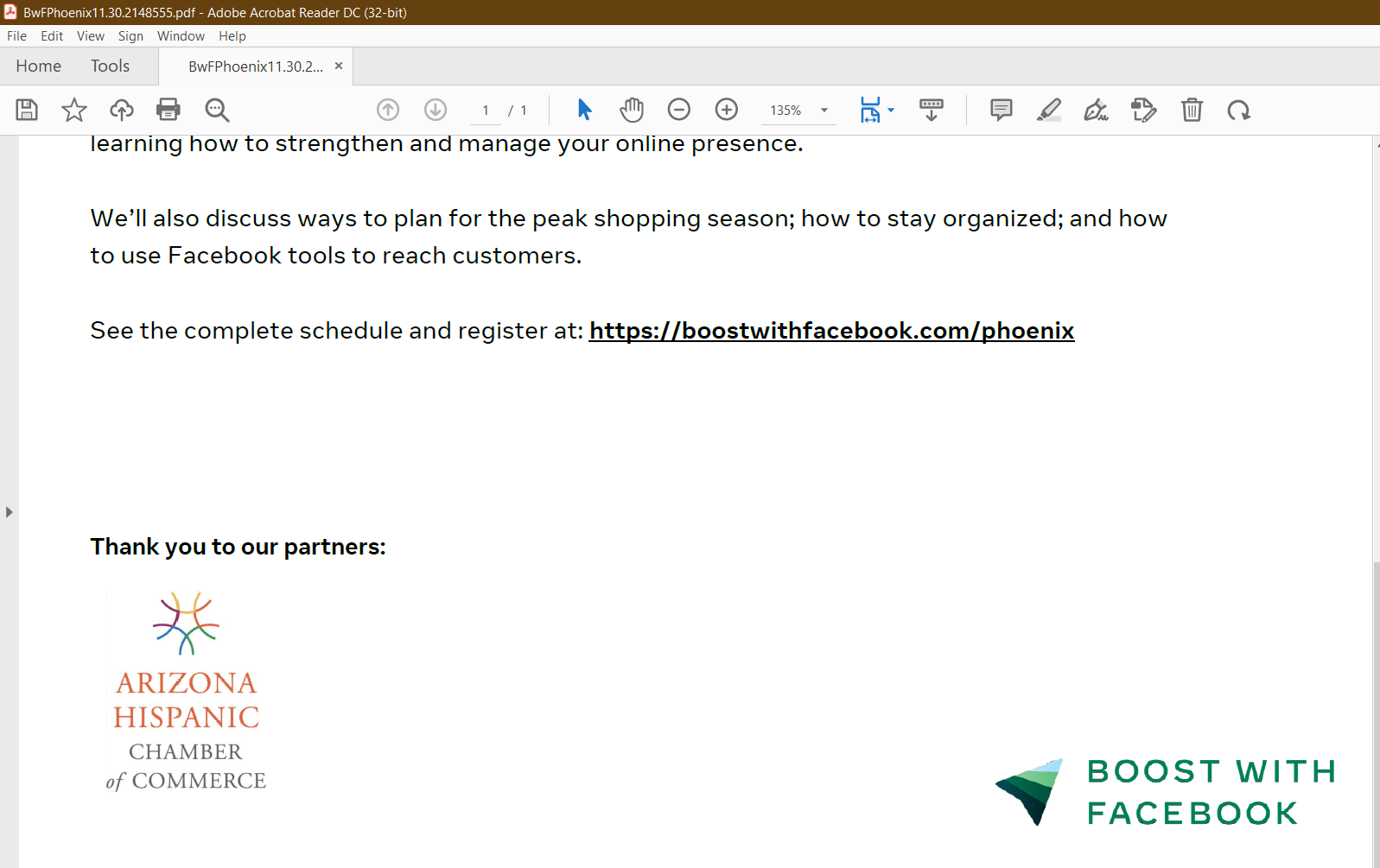 Boost with Facebook is hosting a free virtual training event for small businesses of Phoenix on November 30th at 10:00 am MST. Register today to learn more about how you can use facebookâs tools and resources to grow your business.