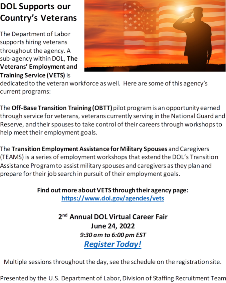 SUMMARY:The 2nd Annual DOL Virtual Career Fair